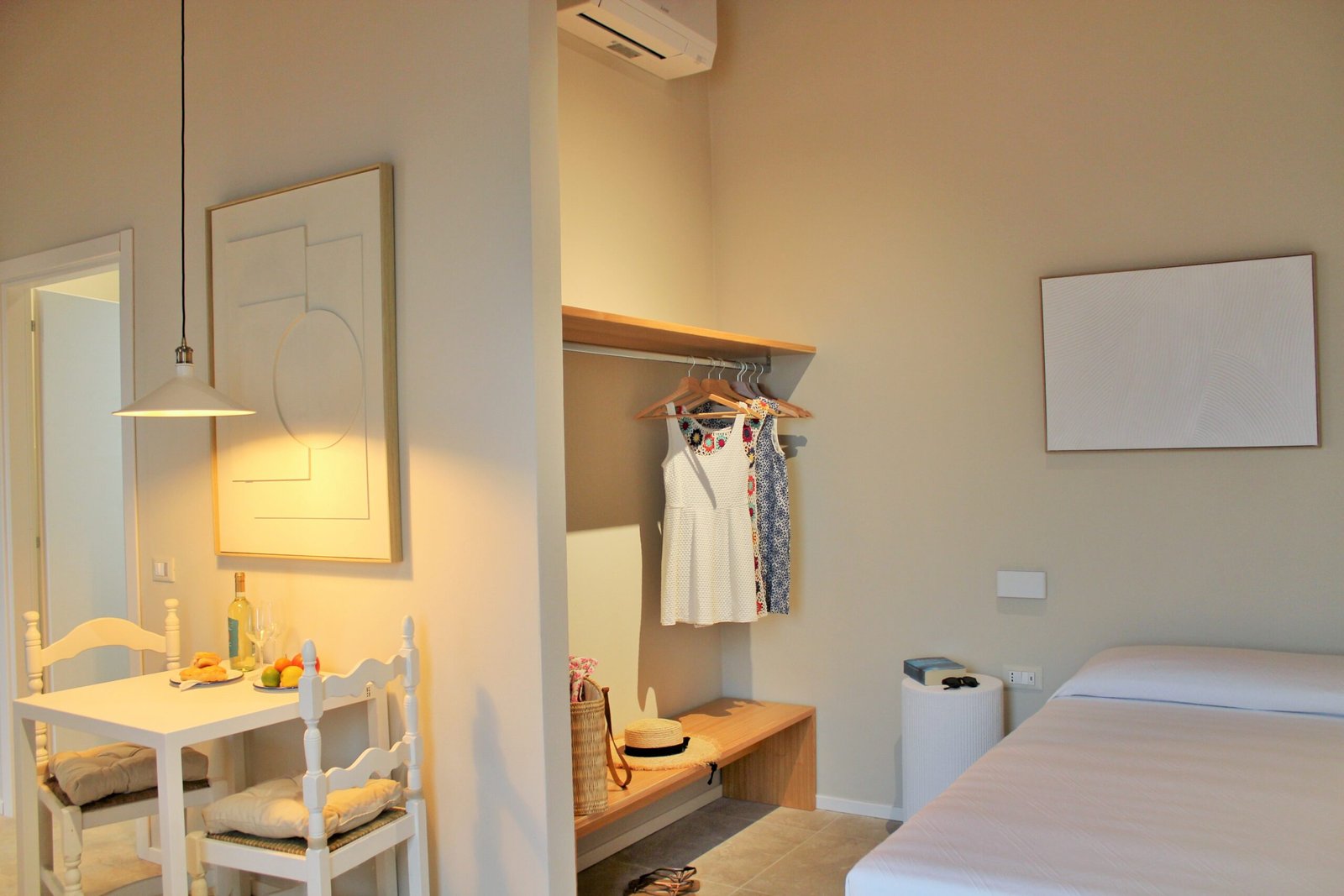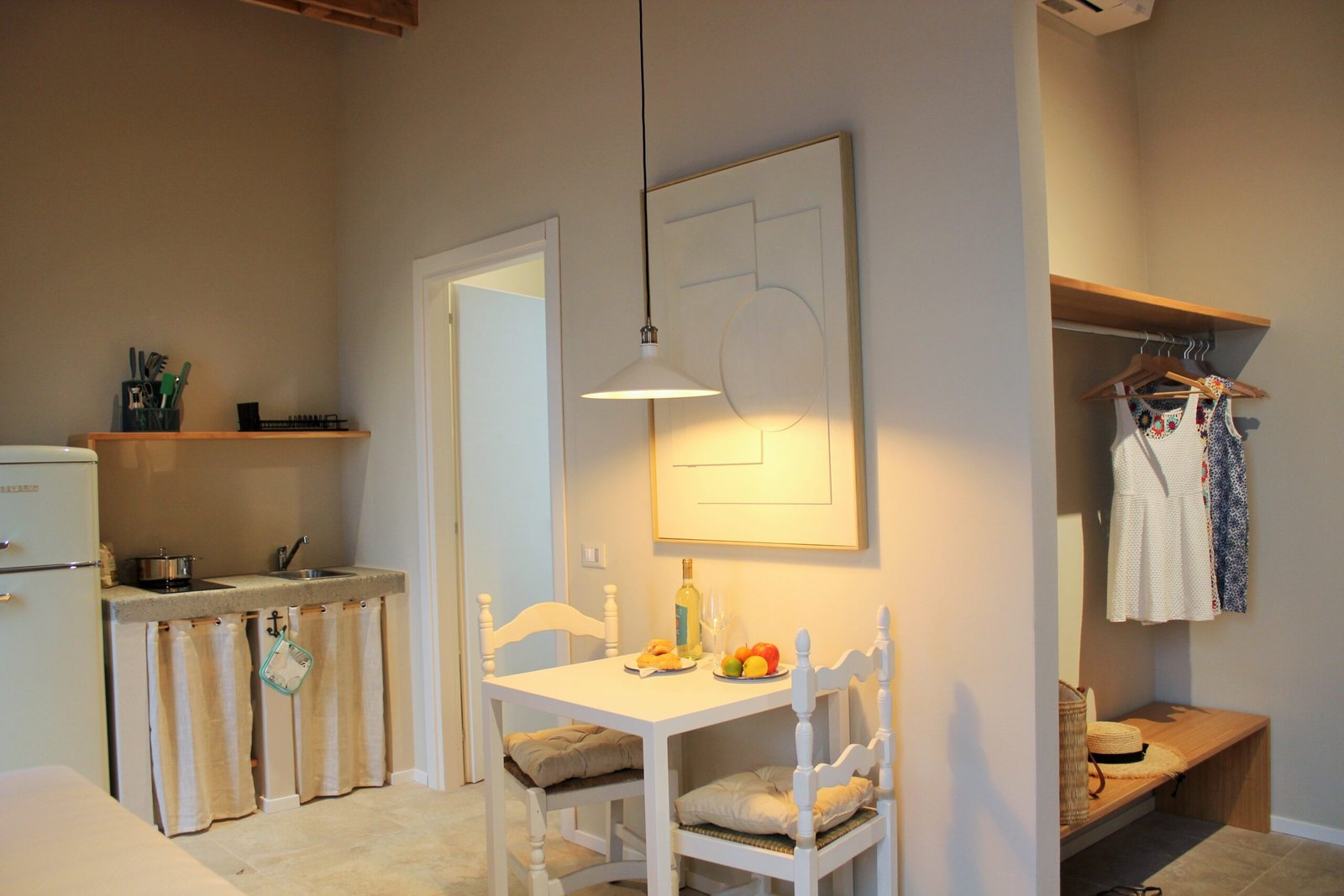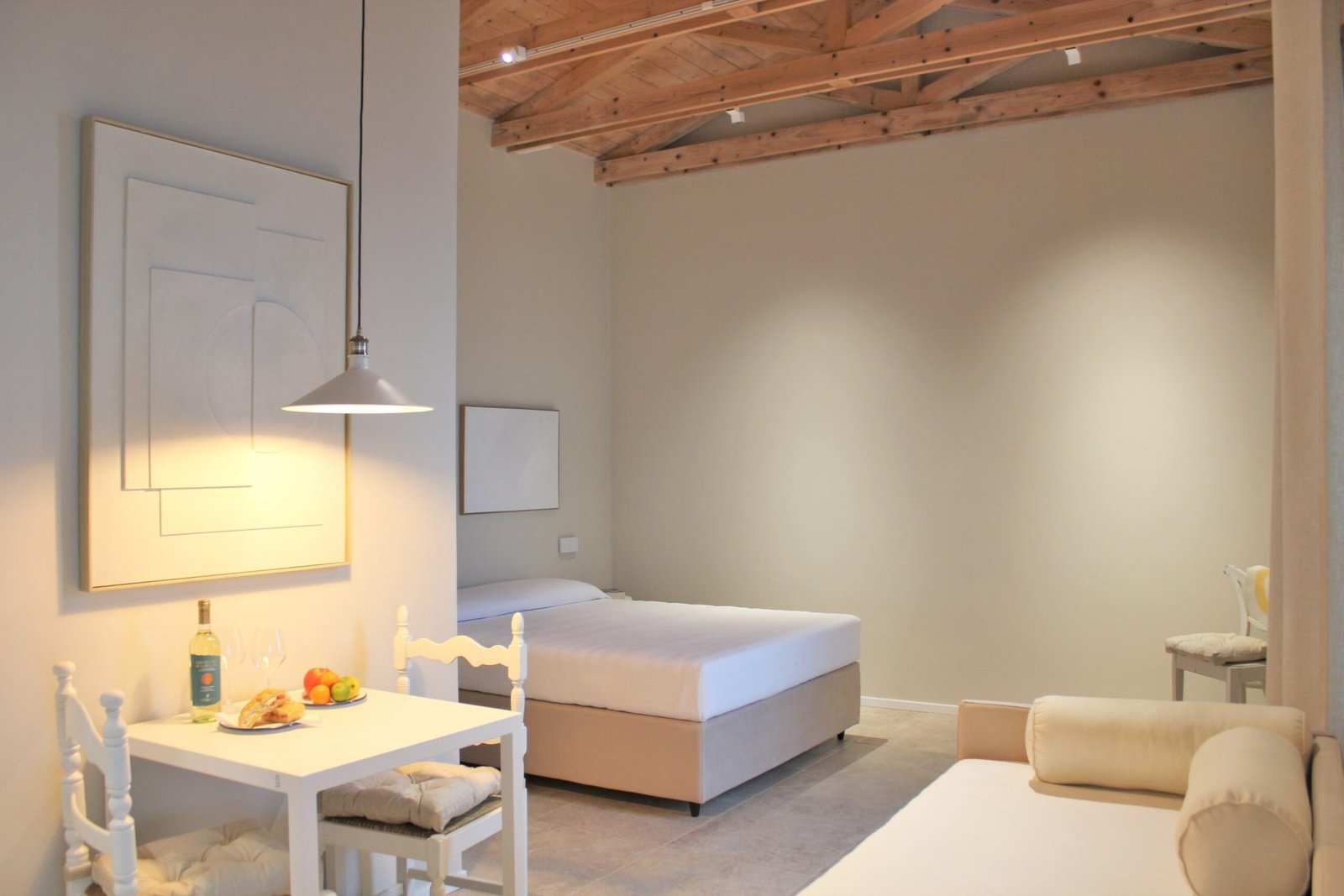 La suite “total white” può ospitare fino a 3 persone, situata al primo piano, offre una meravigliosa vista su tutto il golfo di Baratti. È composta da unico spazio ben suddiviso, con un letto matrimoniale e un letto singolo, un angolo cottura, un tavolo da pranzo e il bagno. Si distingue per i colori chiari e rilassanti, dove predominano il bianco e il color sabbia, in armonia con il paesaggio circostante.